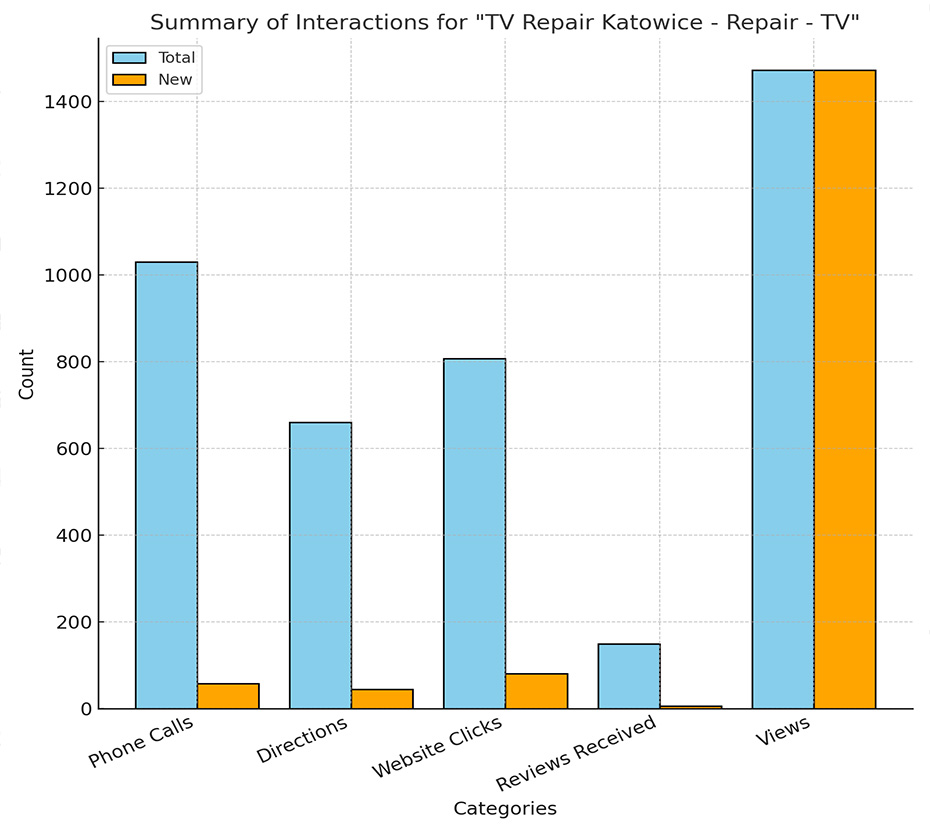 Oto podsumowanie konwersji i interakcji dla firmy „Naprawa telewizorów Katowice – Naprawa – TV” z tego miesiąca: